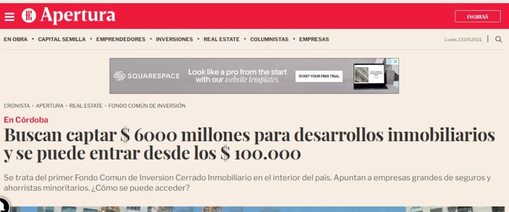 El fondo, estructurado bajo el nuevo régimen especial de vehículos de inversión colectiva para el desarrollo del sector inmobiliario, será auditado por PwC, y buscará invertir en diferentes proyectos inmobiliarios, todos dentro de la provincia de Córdoba.