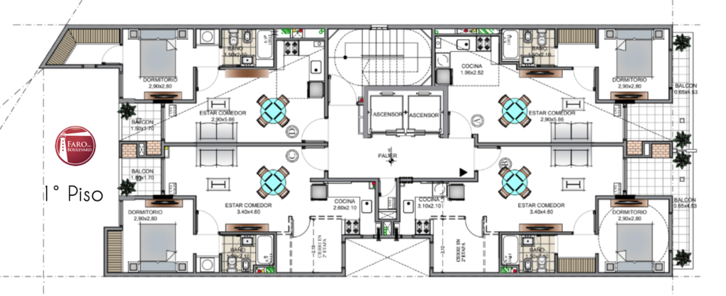 1 Torre con 34 Departamentos