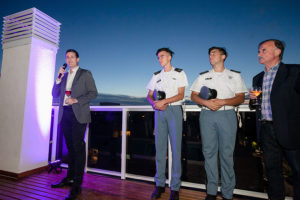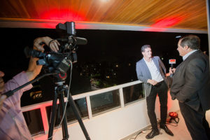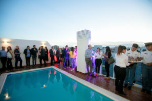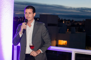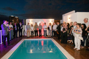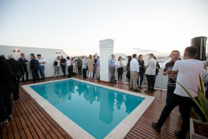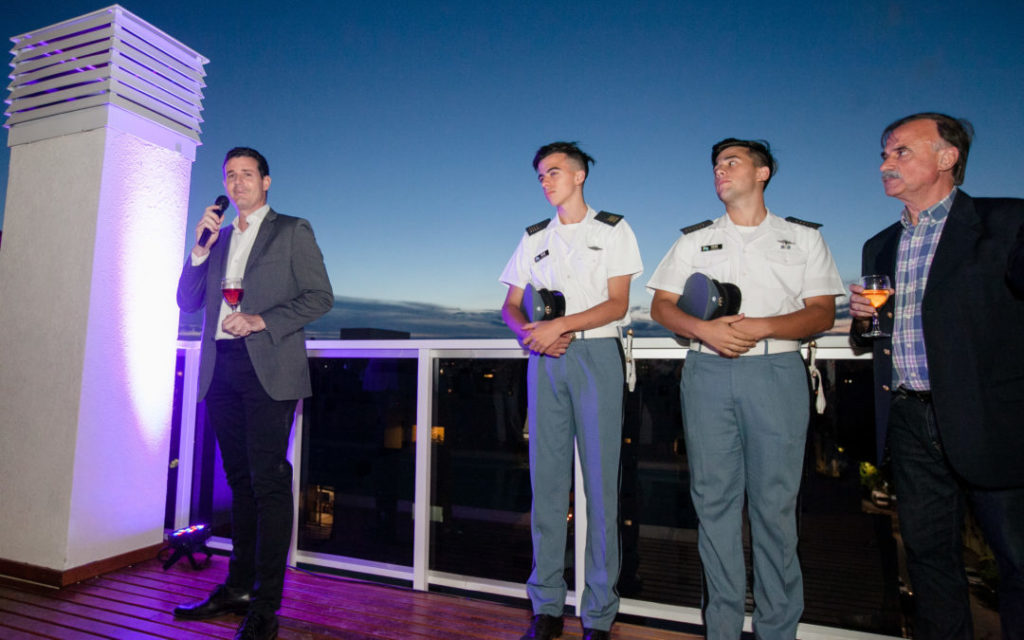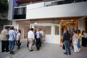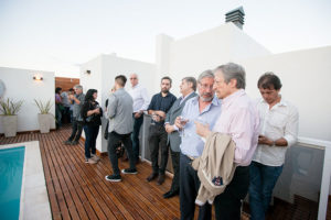 El brindis se realizó en la terraza del emprendimiento de siete pisos, que entre semipisos de dos dormitorios externos y departamentos de un dormitorio (todos con balcones con asador), más la terraza con SUM, pileta y solárium y local comercial en planta baja.