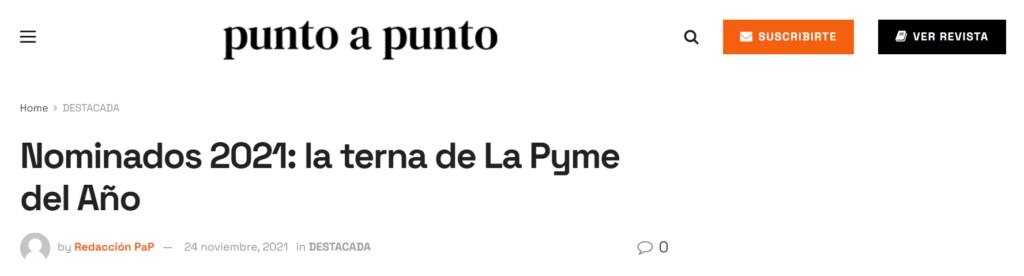 Se premia a la pequeña y mediana organización industrial, comercial o de servicios que haya ganado notoriedad pública -a nivel masivo o sectorial- por un fuerte lanzamiento, crecimiento o conquista de un nuevo mercado a lo largo del año.